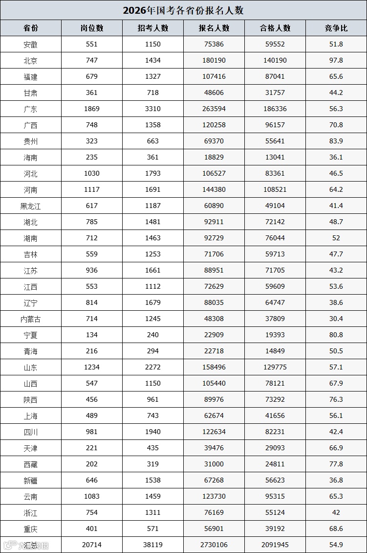 国考往年报名人数、和进面分数