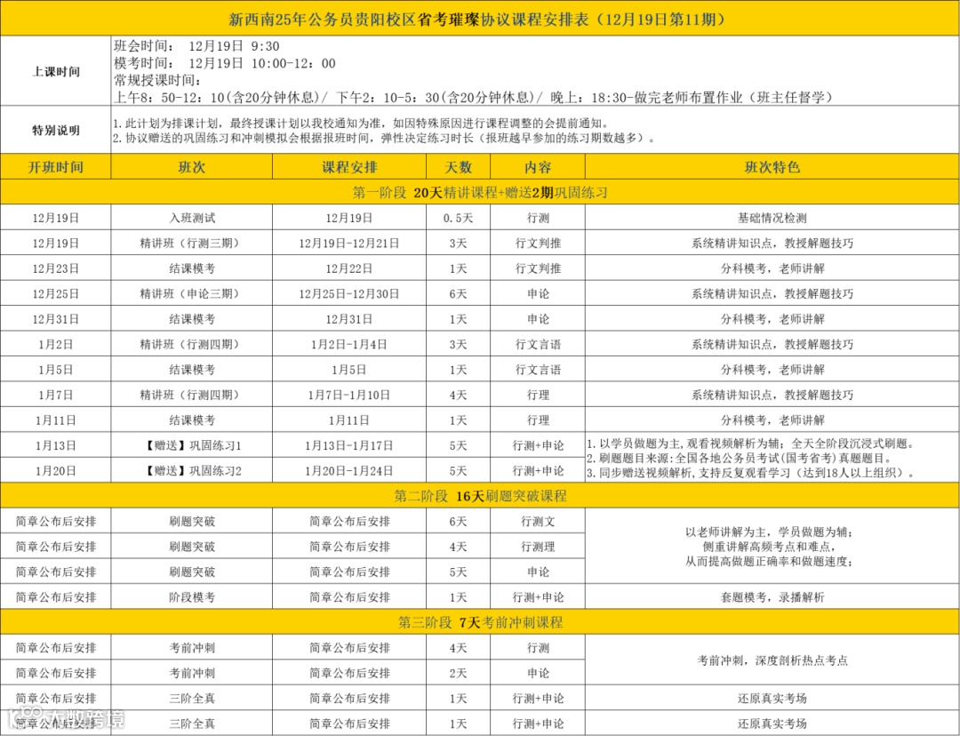 *上图:新西南贵阳校区省考班课表