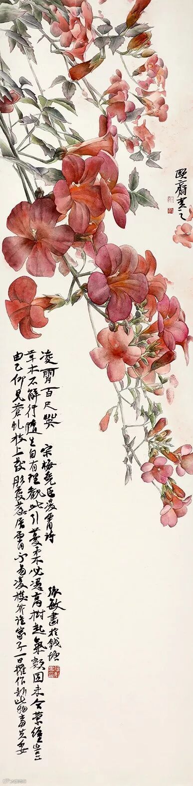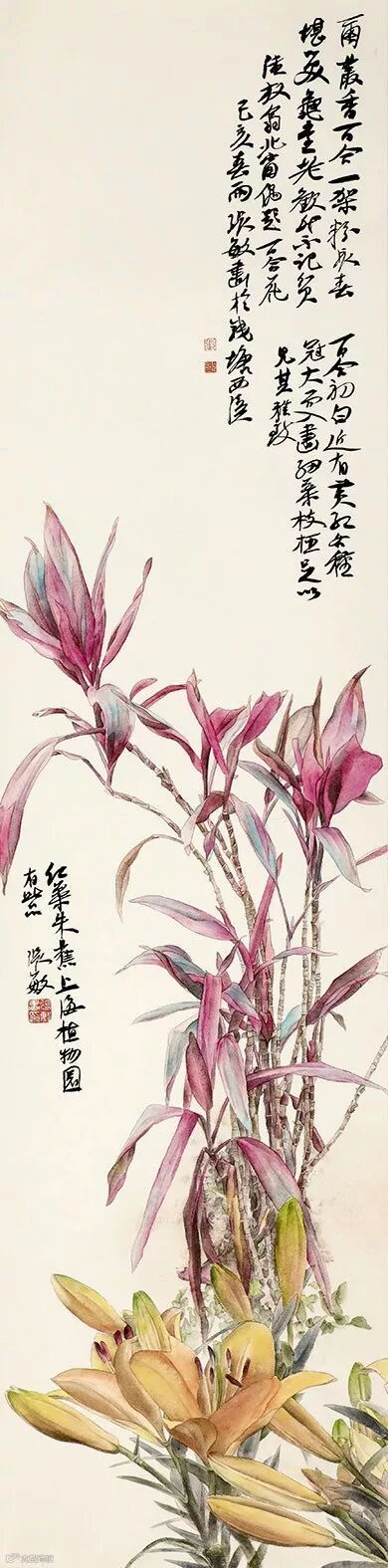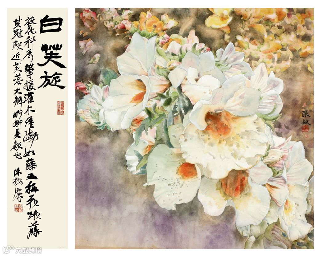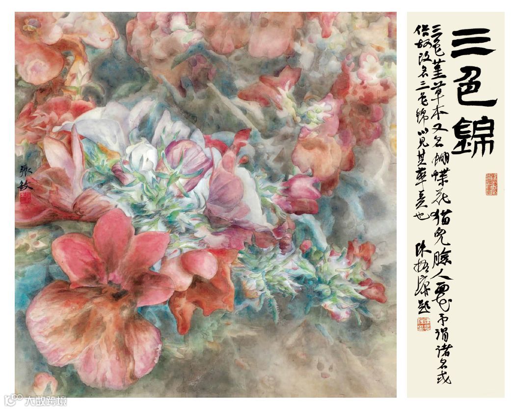 張敏以工筆作繪事,創作題材以花繪見長。她筆下的花草,一反時下工筆創作中普遍形似而神散的通弊,注重以形寫神,以神彰形,形神一體的筆墨運用,可謂運傳統工筆以現代印象,以寫實精神成藝境文章。觀看張敏的花繪作品,能同時體會到傳統的筆墨情趣和現代的印象表達,感受到一種獨特的通靈氣息,並隨之引發出多維度的時空想象。