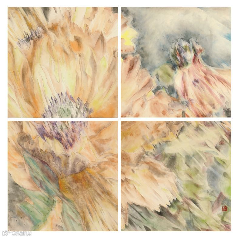 五年前,作者本想去世界各地探訪不同的文化與風景,欣賞色彩斑斕的各樣花卉。在做好了一切遠行準備後,因爲突發原因最終未能成行,於是便用27x27厘米的宣紙創作了十八幅花卉作品,像是一張張郵票,可無限、可有限、可嚮往、可到達,寄托著對遠方的嚮往。後將這組姿態各異、神韻萬千的花卉作品命名為《十八學士》。