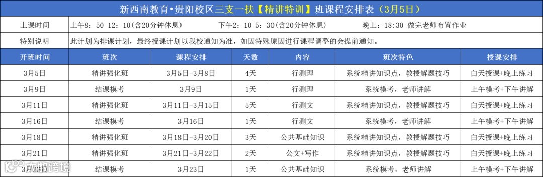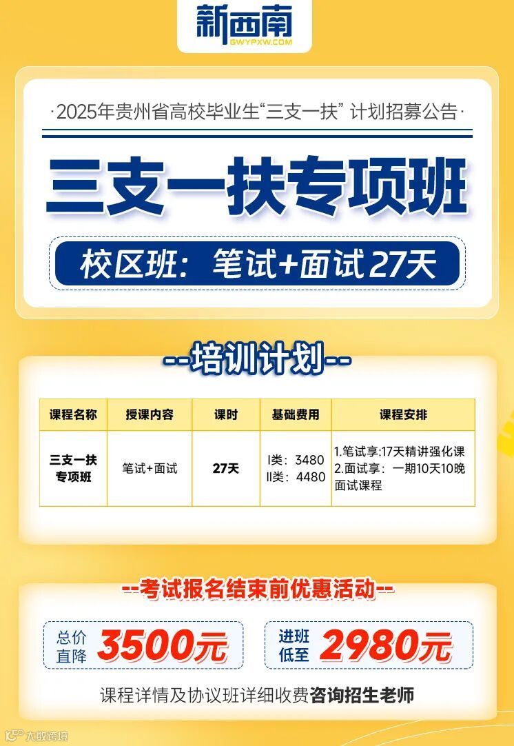 同时新西南针对三支一扶也开设了专项班次