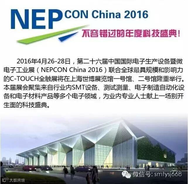 电子制造业代表了先进产能的方向,在国家产业升级过程中必不可少。随着电子制造业的纵深发展,“中国制造”正在催生海量需求,众多电子爱好者,专业观众,电子制造商纷纷云集国内外专业电子制造展示平台(NEPCON China 2016)