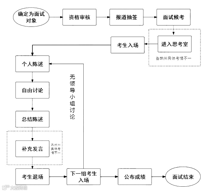 四川省考面试形式分为结构化和无领导两种,整体上以结构化为主,以下为两种面试的相关流程,可参考。