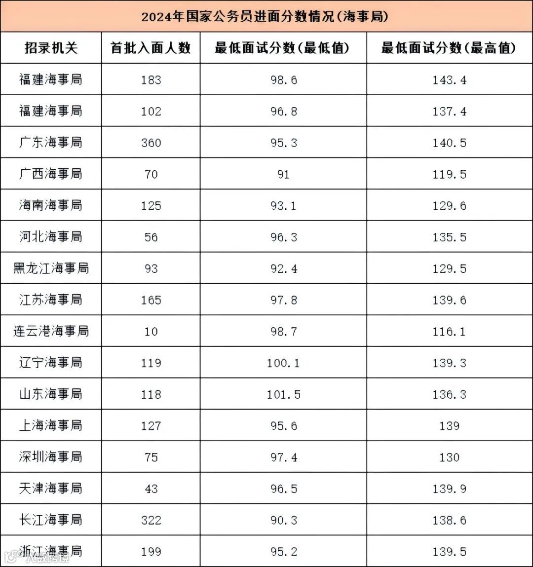 2024国考海事局首批面试名单共计2167人,如图所示海事局入面分数最高分为143.4分,最低分为90.3分。