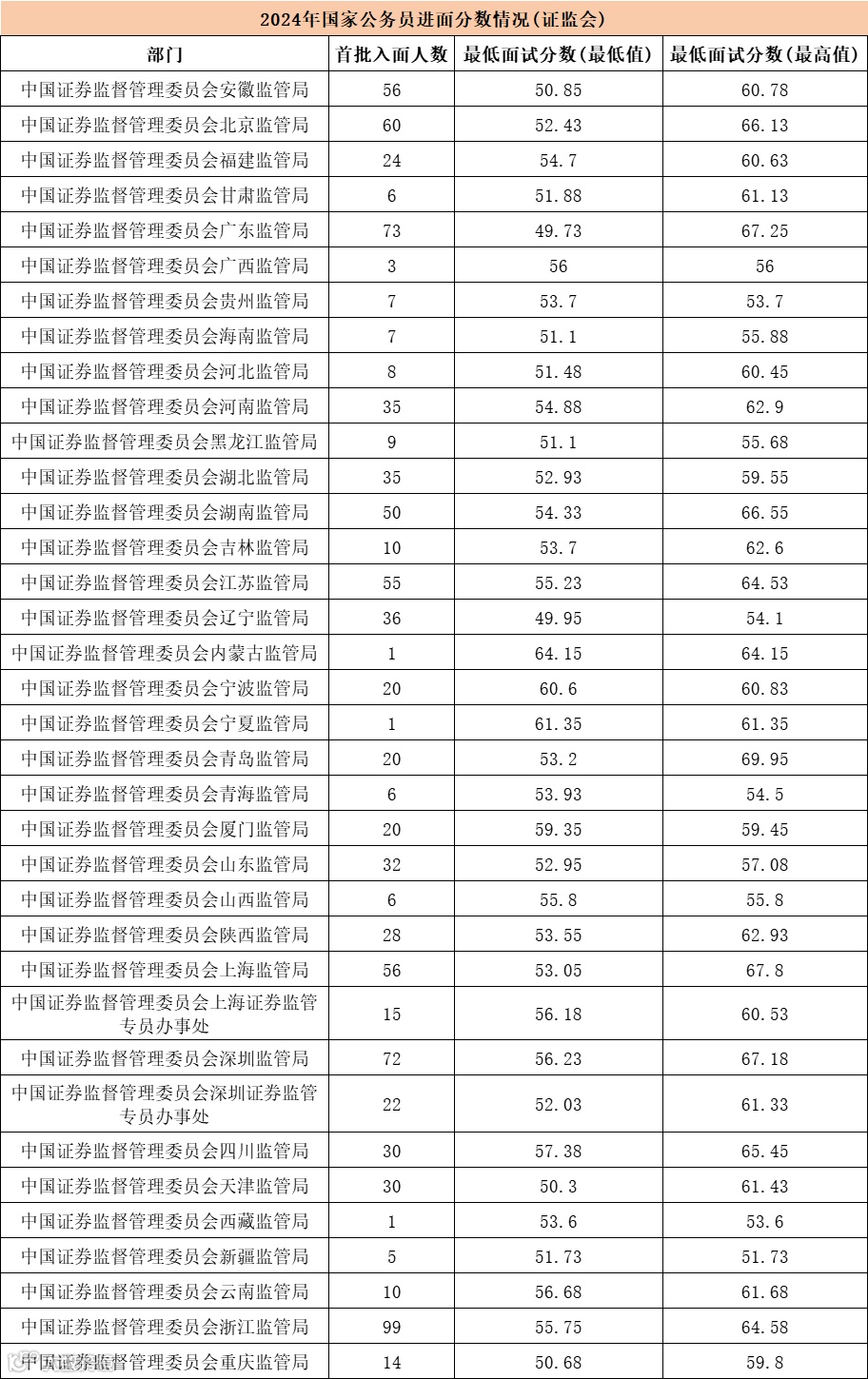 2024国考证监会首批面试名单共计962人,如图所示入面分数最高分69.95分,最低分为49.73分。