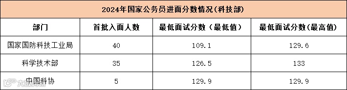 2024国考科技部首批面试名单共计80人,如图所示入面分数最高分为133分,最低分为109.1分。