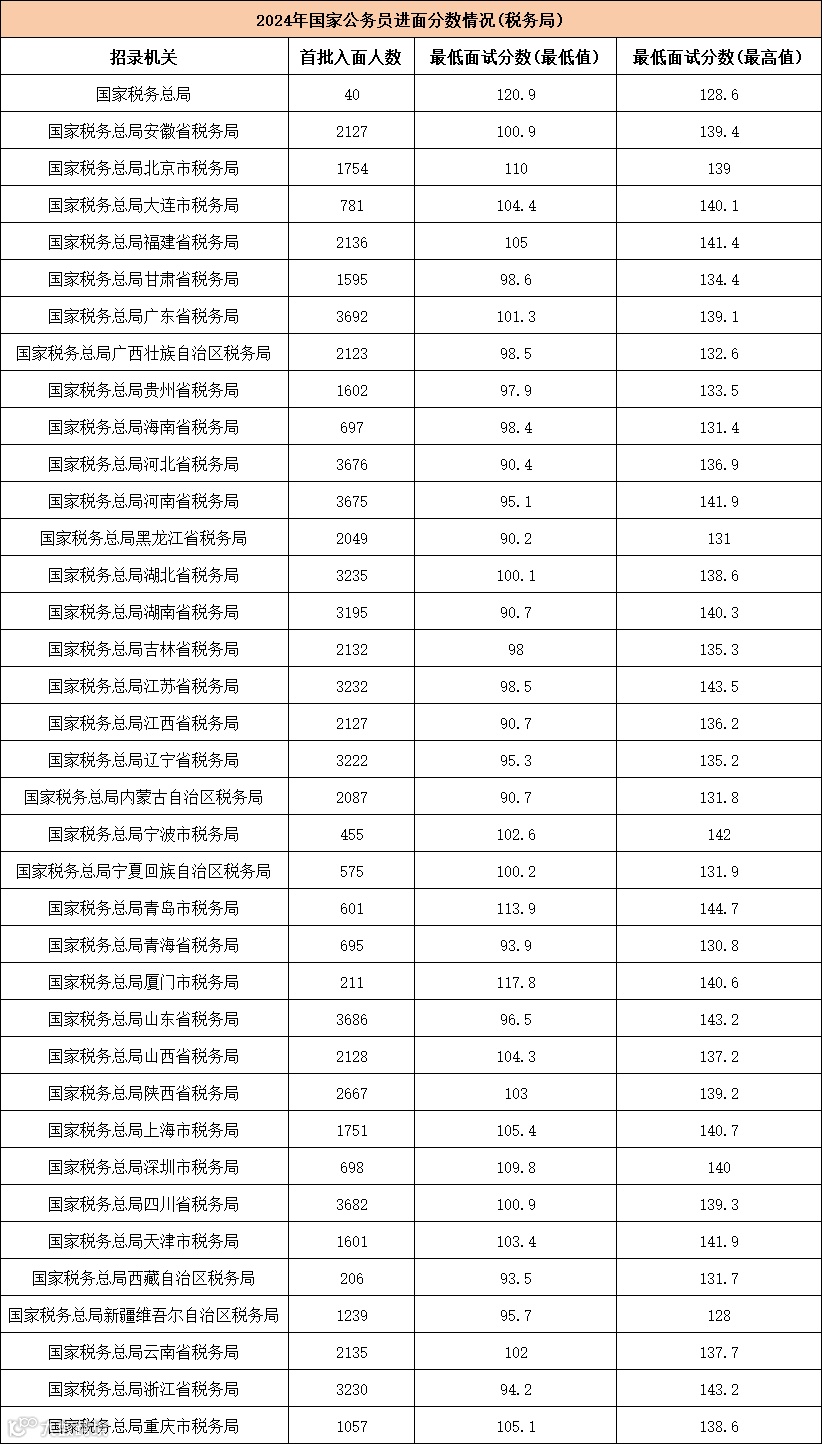 2024国考税务局首批面试名单共计71794人,如图所示入面分数最高分144.7分,最低分为90.2分。