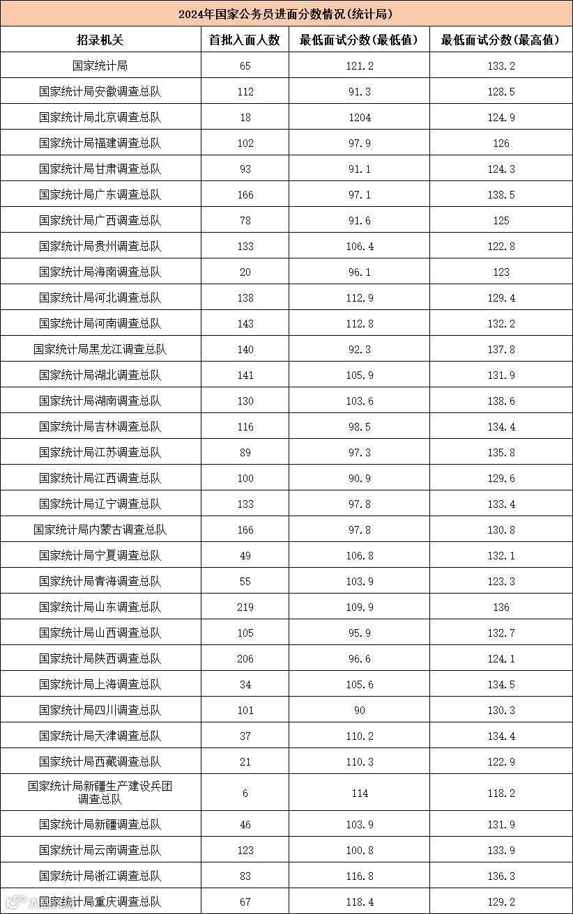 2024国考统计局首批面试名单共计3235人,如图所示入面分数最高分为138.6分,最低分为90分。