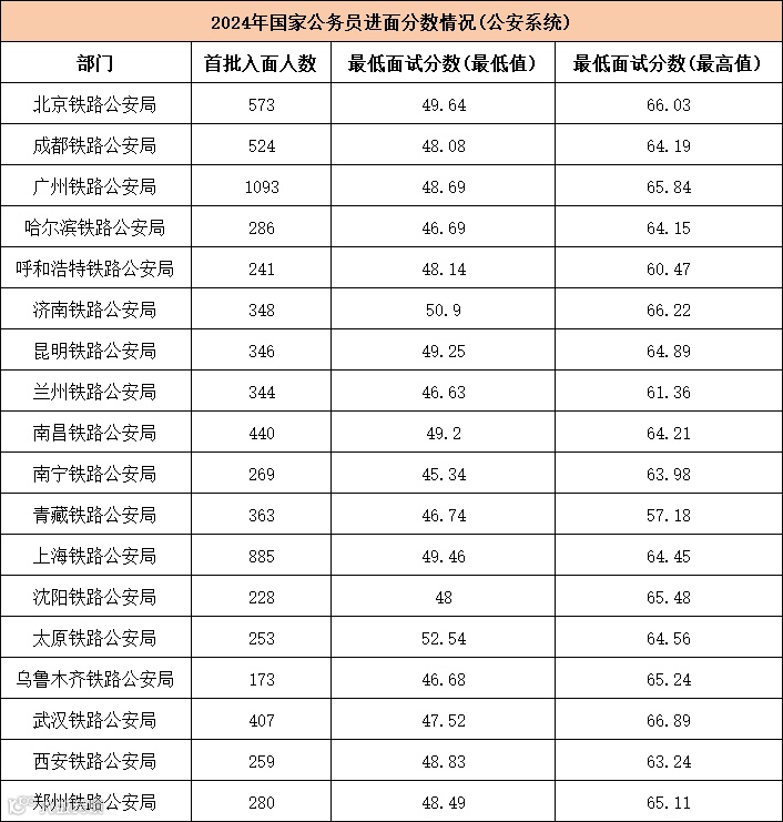 2024国考公安系统首批面试名单共计7312人,如图所示入面分数最高分为66.89分,最低分为45.34分。