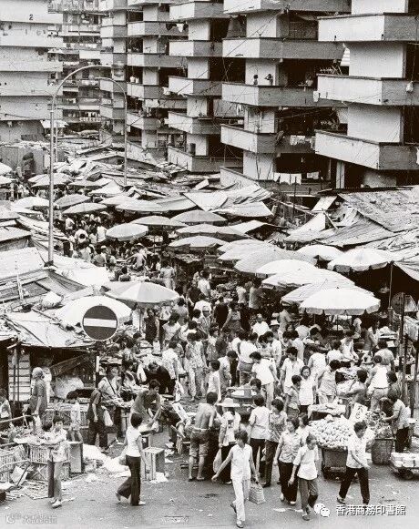▲在徙置區攤檔購買食物及日用品的居民,約1969年。