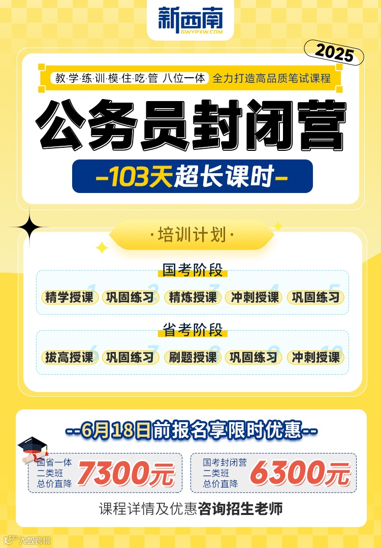 课程安排:103天正课+N天赠送,包含国考阶段(笔试+面试)和省考阶段(笔试+面试)。