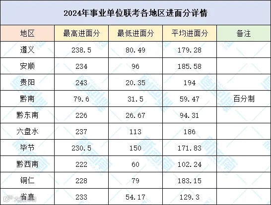 2024年事业单位平均进面分、最高进面分、最低进面分如下: