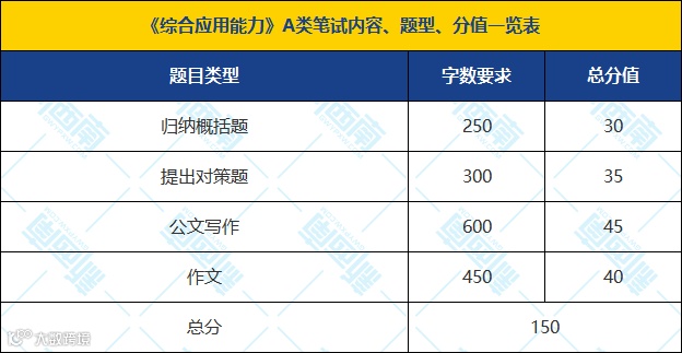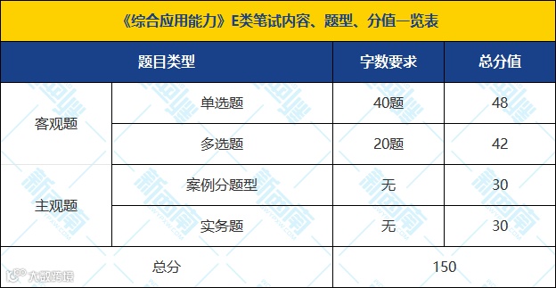 综应:以主观性试题为主。主要涉及事业单位管理岗位典型的工作任务,如:观点归纳、资料分类、草拟信函、会务安排、应急处理、联络通知等。