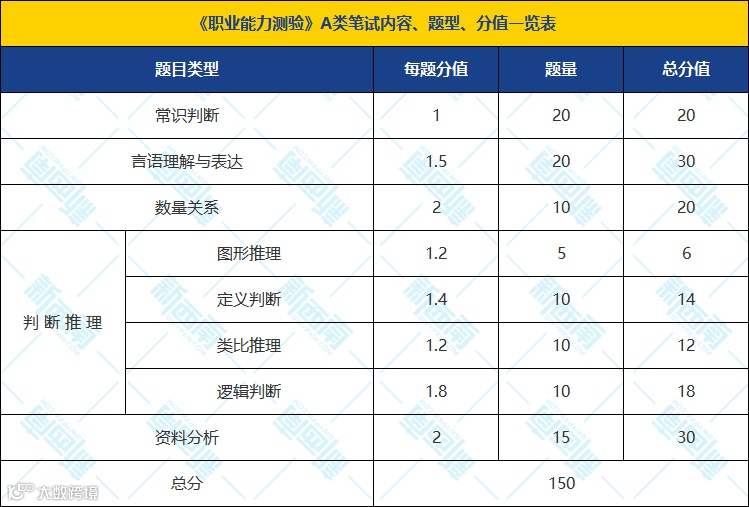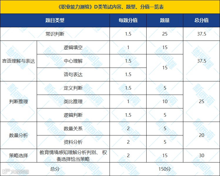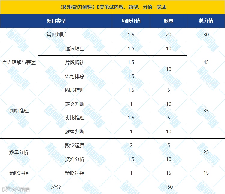 职测:常识判断、言语理解与表达、数量关系、判断推理和资料分析。