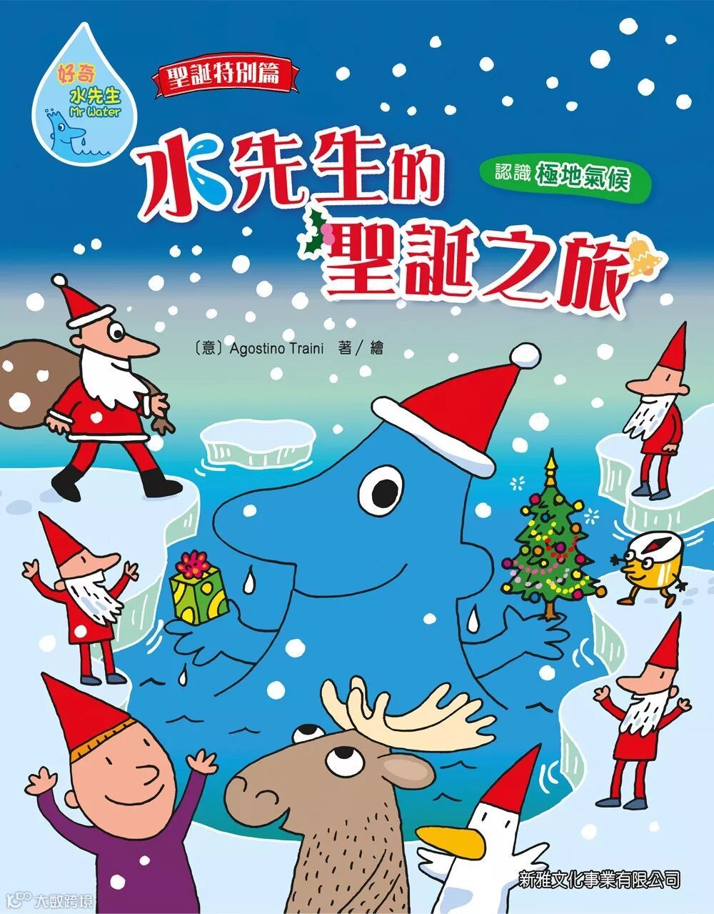 這天,水先生看見安格和皮諾在忙著寫信給聖誕老人,他們都很好奇聖誕老人是住在哪兒?到底聖誕老人每年如何一個人為世界各地成千上萬的孩子準備聖誕禮物?為了解開謎團,水先生決定帶他們到北極,讓他們認識聖誕老人的工作……小朋友,快來跟水先生一起展開尋找聖誕老人之旅吧!