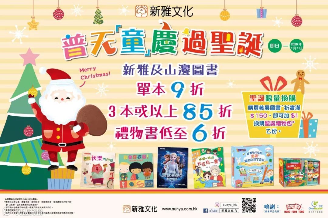新雅文化與大家歡度聖誕!由即日起至2020年1月1日於全線香港三聯書店、香港中華書局(機場分局除外)、香港商務印書館 (旺角分館、商務文化快線(東涌)、大學店、Passage除外)購書可享以下優惠: