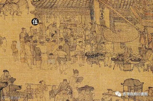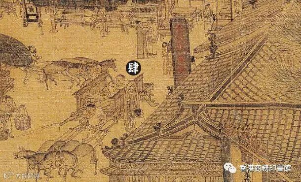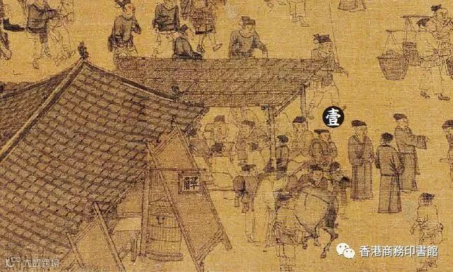一塊廣告牌,映襯出開封貴婦的化妝用品。在《清》卷臨近結尾處書有「劉家上色沉檀楝」的豎牌,通常認為這是一家賣檀香的「香舖」,尚有望文生義之嫌。