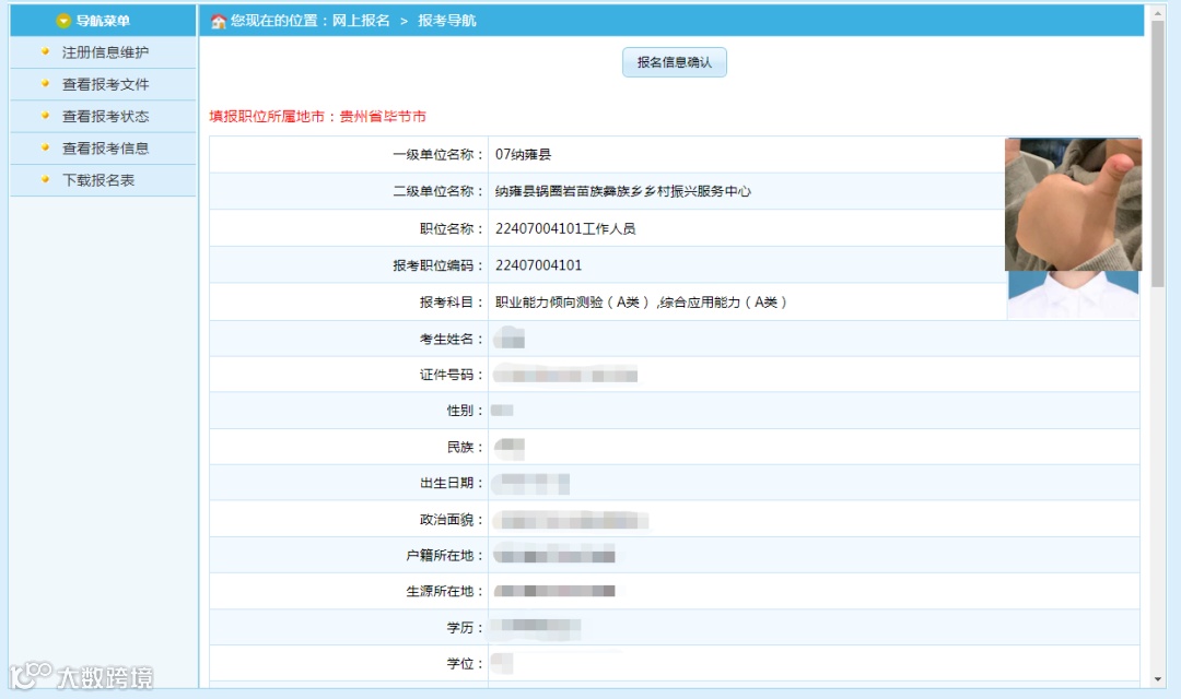 进行报名信息确认