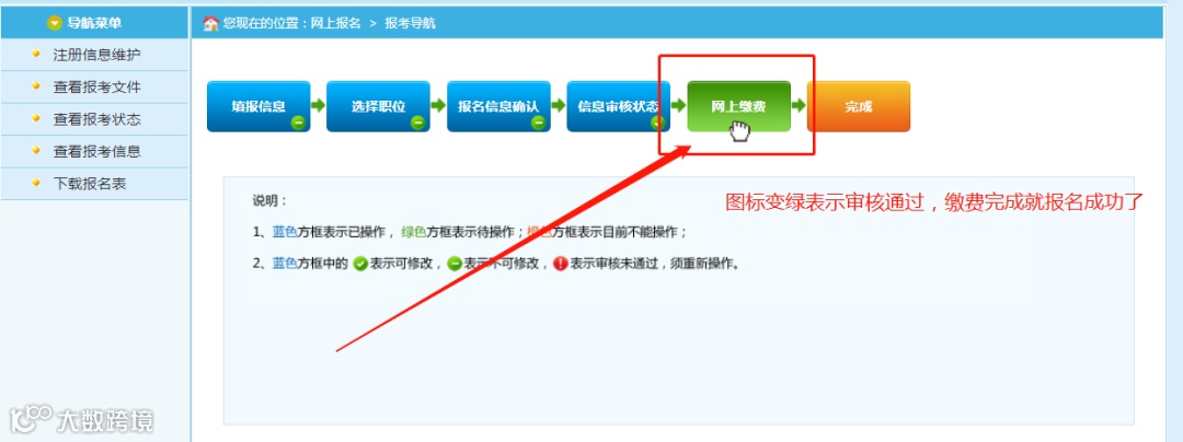 等待审核通过然后缴费即可