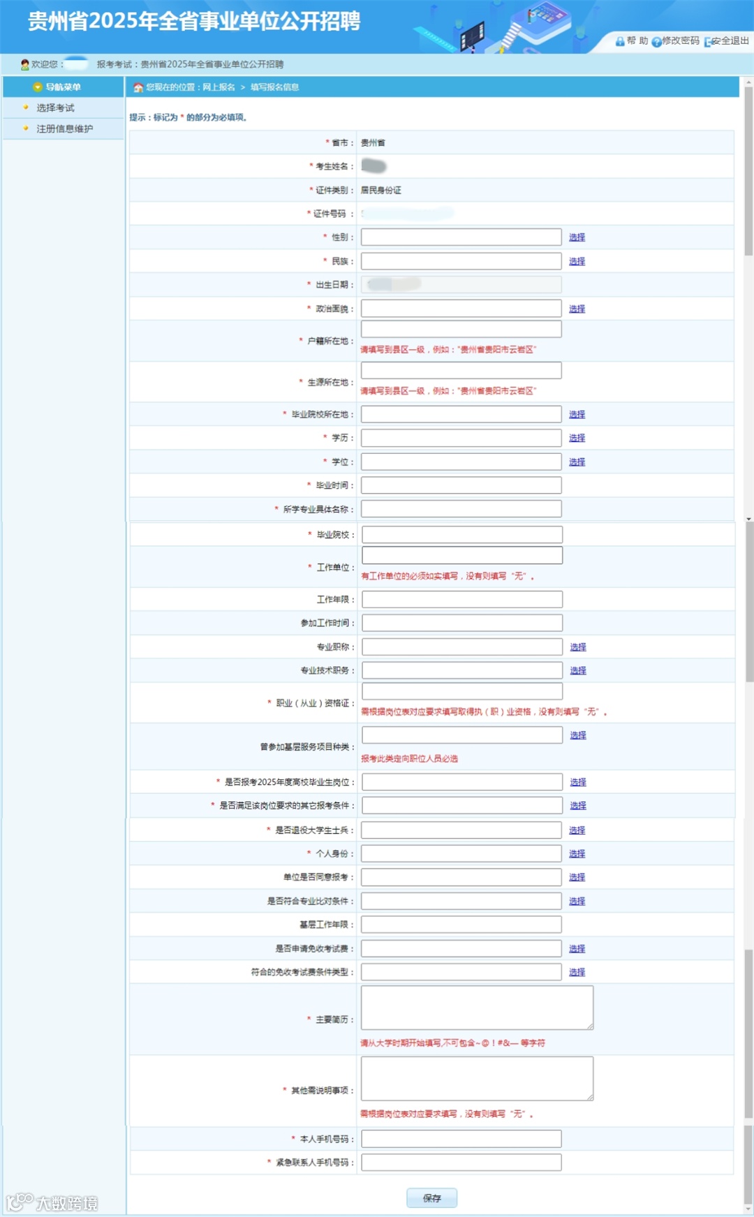 填写报名信息标注*号的