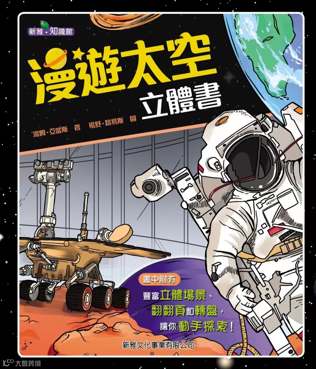 簡介:當你打開這本書,彷彿走進了一座太空館,各頁的立體場景會讓你驚喜萬分,並附有翻翻頁、拉拉頁、轉盤機關等25個互動設計,介紹各種天文知識:從地球可見的日蝕、月蝕和星座,到遙遠的星系和神秘的黑洞……你還有可以認識人類探索太空的成就,及對未來在火星生活的想像。