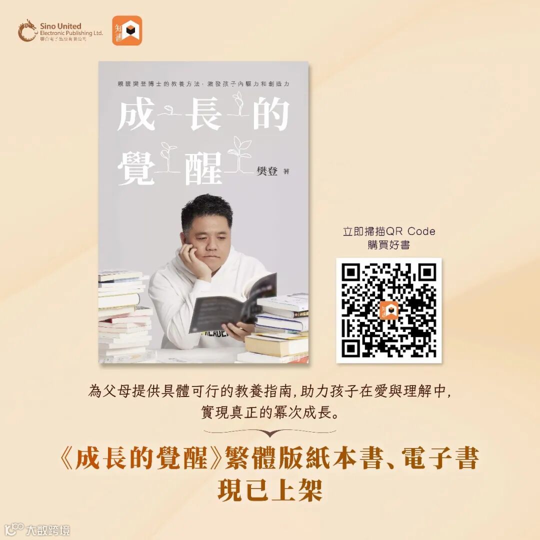 《成長的覺醒》繁體中文版紙電同步由樊登老師授權,聯合電子公司出版發行。活動現場,樊登老師與聯合電子董事總經理周晟先生共同為新書揭幕,標誌着這部關注成長與教養的力作正式登陸港澳及海外華文閱讀市場。