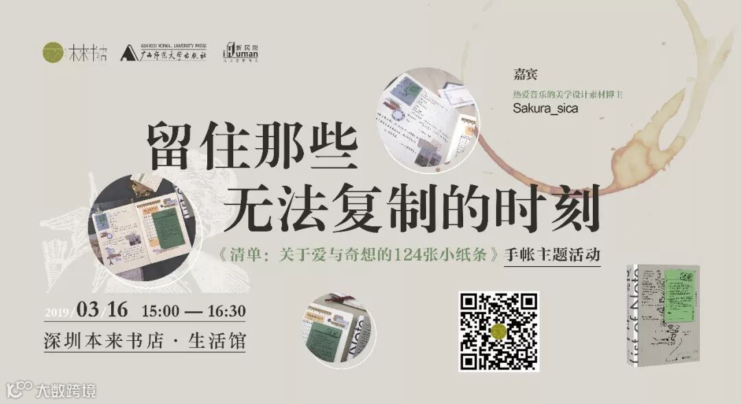 3月16號還有一個清單X手賬聯名的主題製作活動,需要購書報名參加,如果喜歡手賬製作的可以掃描圖上二維碼報名參加噢~