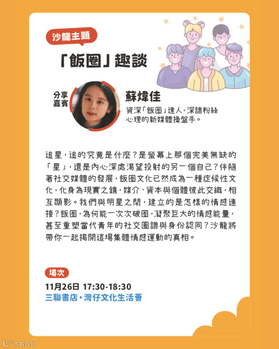 2025年春季,「香港青少年1872沙龍」與聯合出版集團旗下的「一本讀書會」合作推出系列沙龍講座。今秋十一月及十二月,「香港青少年1872沙龍」與「一本讀書會」再度攜手,延續春季之約,以系列文化講座續寫閱讀的新篇章。