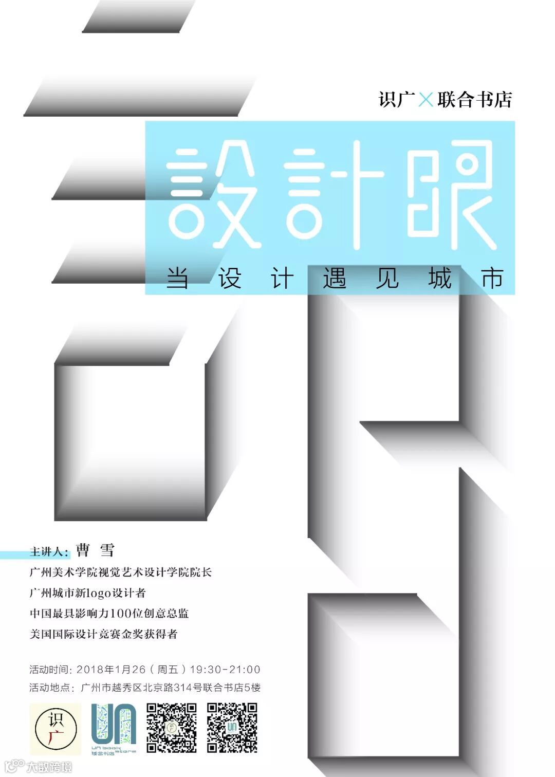 為此,聯合書店攜手識廣,邀請來了廣州美術學院視覺藝術設計學院院長、廣州城市新Logo設計者曹雪,給我們帶來分享——設計眼:「當設計遇見城市」。