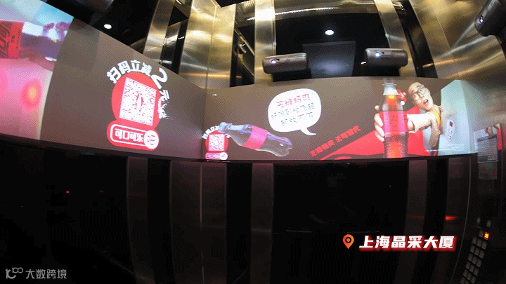 和科罗娜异曲同工,可口可乐也曾利用梯影四面屏打造无糖“可口可乐海洋”,让乘梯受众360°体验无糖可口可乐的极致畅爽。