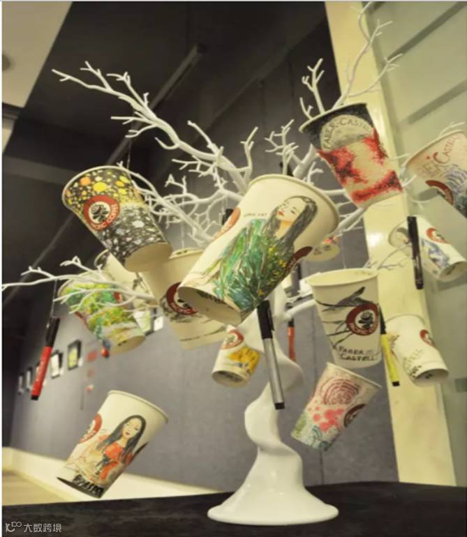 正在聯合書店北京路店五樓展出的展覽「印象廣州」——馬克筆插畫展,當中就有一棵有幾位藝術家在咖啡紙杯上創作一起完成的藝術小裝置。