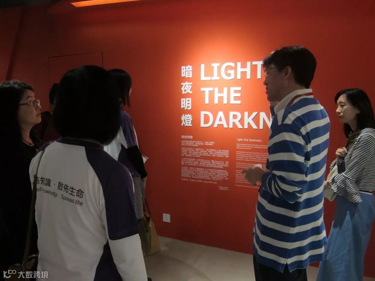 是次參觀重點在七樓的人道教育中心──「暗夜明燈」主題資料館,導覽員帶領我們穿梭一條通道,透過視覺、聽覺和觸覺元素,了解紅十字會救援人員在災區(如敍利亞)穿戴的簡單裝備、救援物資、義肢、照片故事、堆積如山的失踪人口文件等等,親身體會人類苦難和人道救援的意義。