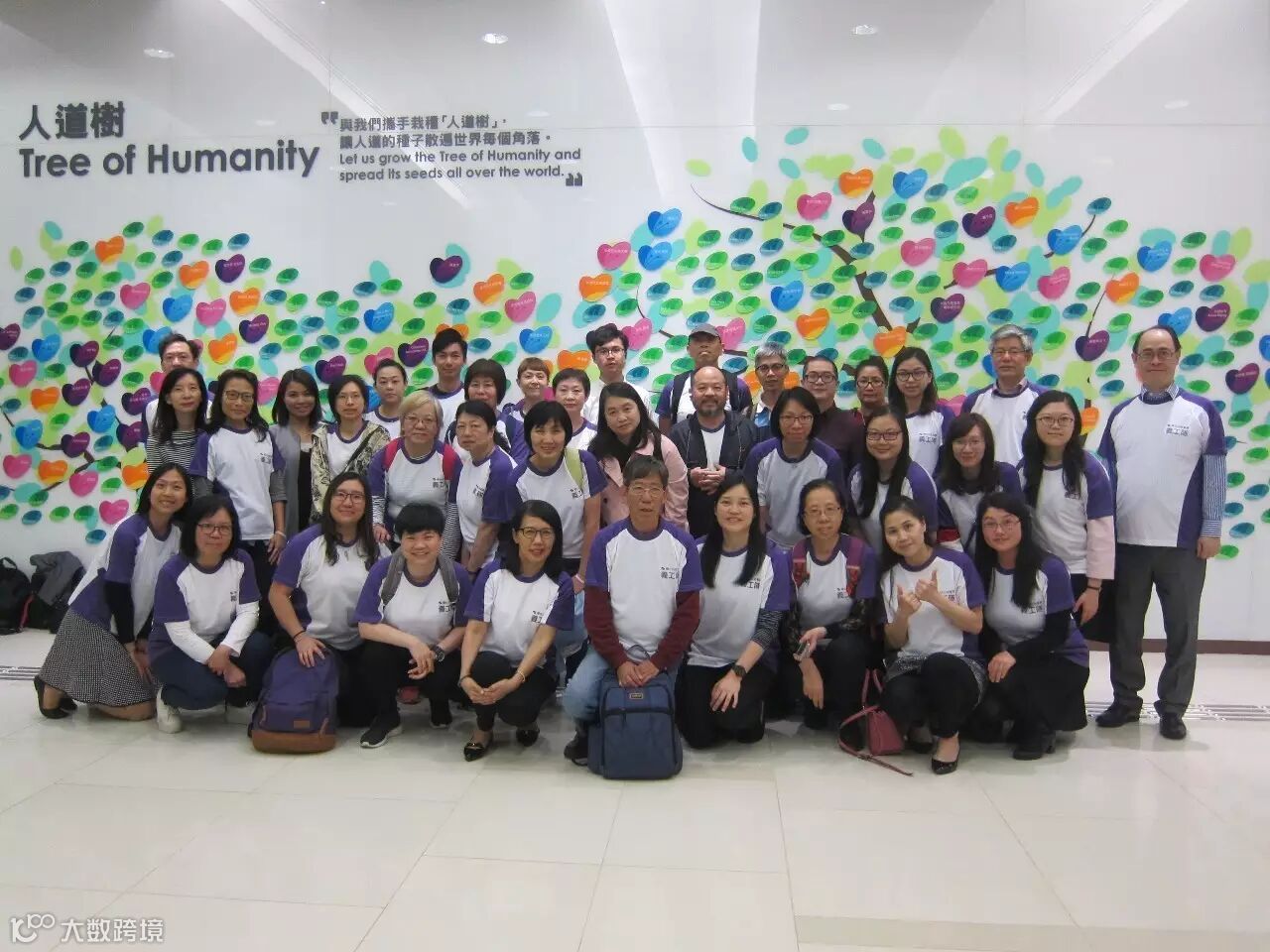 義工們踴躍參加,在紅十字會總部大堂「愛心樹」前留倩影