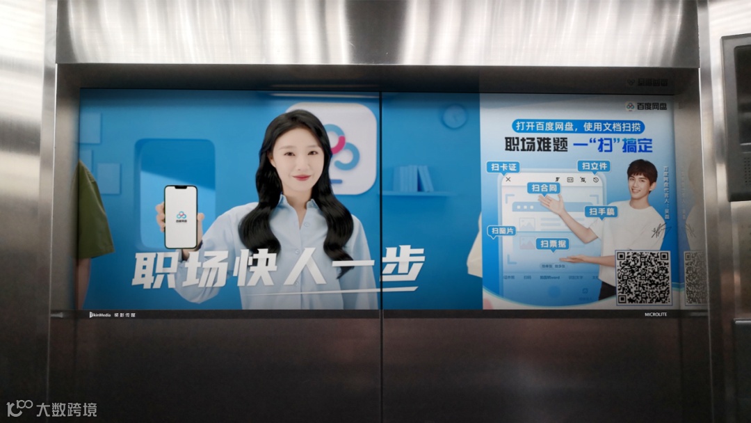 通过梯影媒体的高频曝光,百度网盘精准锁定一线城市高端商务楼宇,占领核心消费人群心智。
