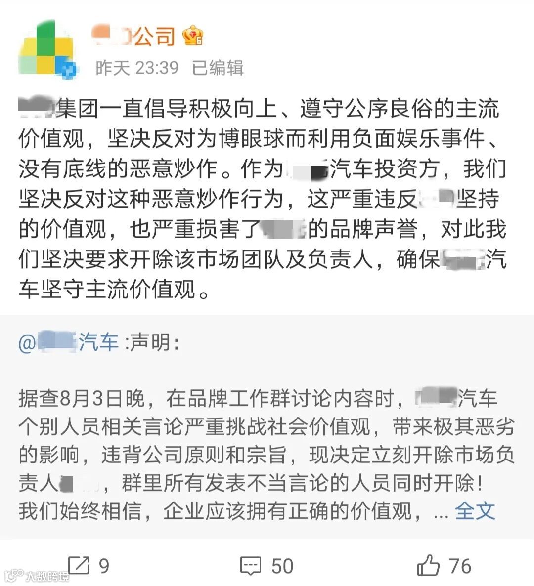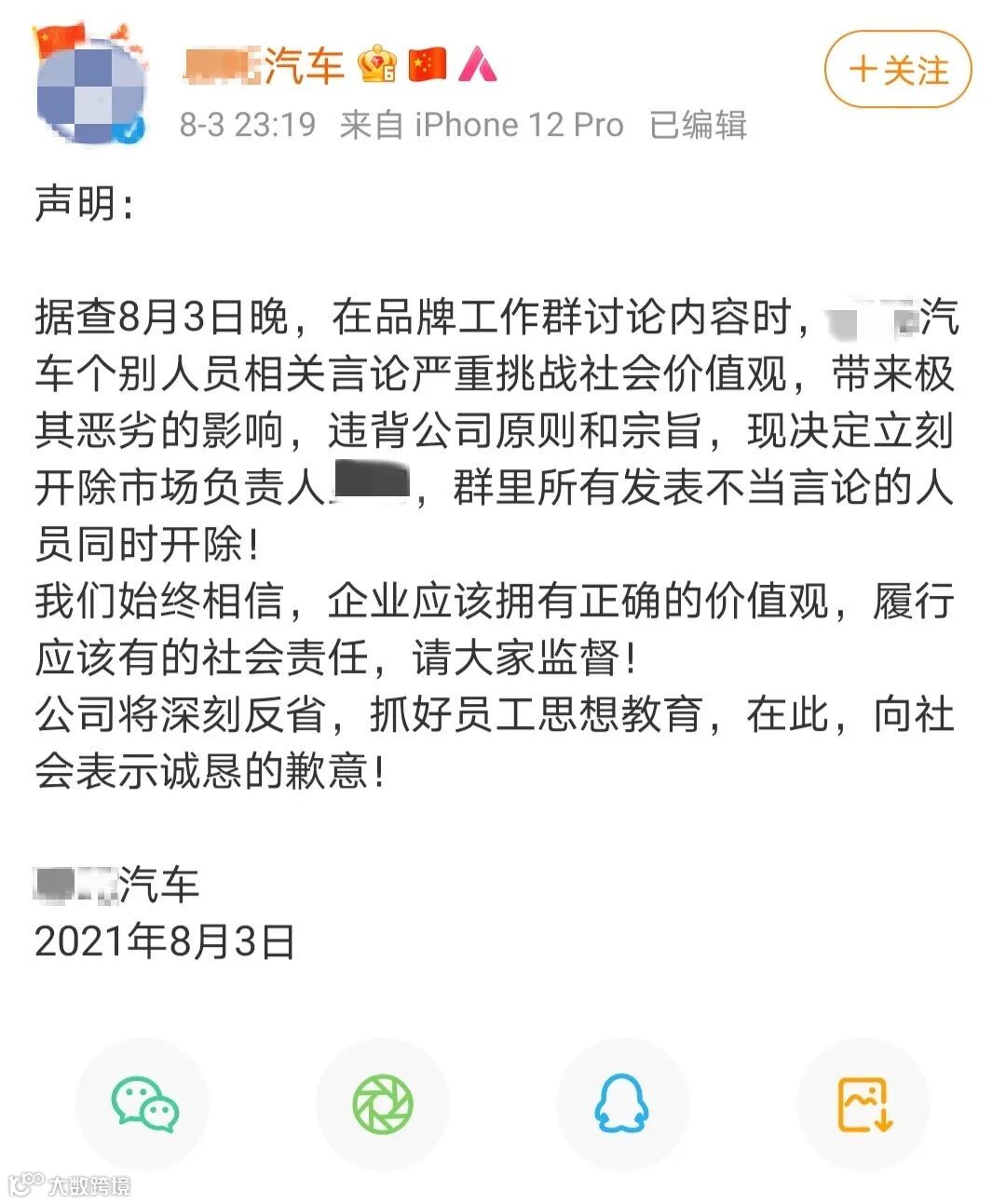 XX汽车在昨天发布了一则微博,称