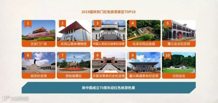 在庆祝新中国成立70周年之际,首都北京成为今年黄金周红色旅游客流量最大的目的地,延安、上海、井冈山、遵义等红色旅游目的地也迎来大量游客。以北京为关键词的搜索量同比增长150%;以嘉兴、延安、井冈山、遵义等为关键词的搜索量同比增幅也超过100%。