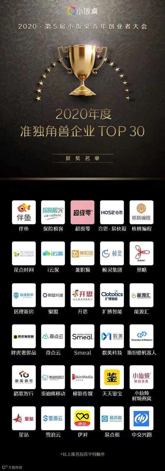 在本届小饭桌青年创业者大会上,除了「2020年度准独角兽企业TOP 30」,还有几大年度重磅创投榜单揭晓,优秀创业企业、项目汇聚一堂,其中有很多都是梯影的合作伙伴。