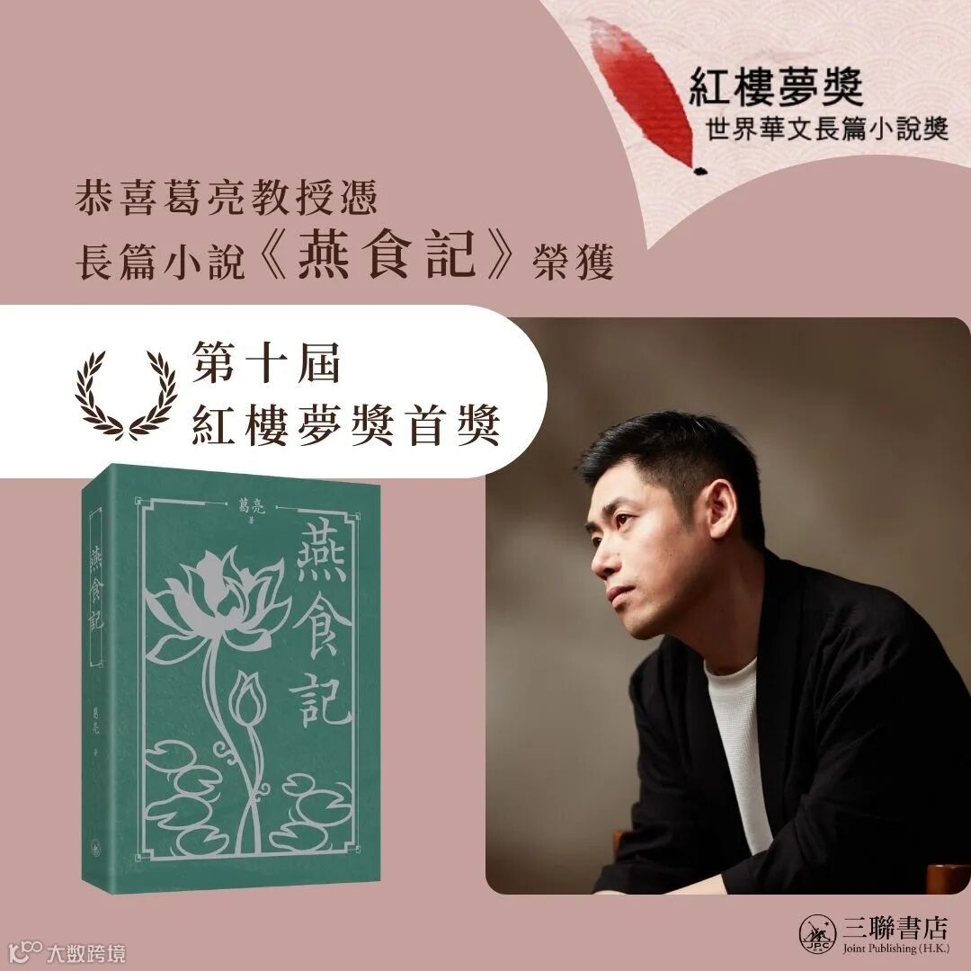 香港浸會大學昨日公布第十屆「紅樓夢獎:世界華文長篇小說獎」得獎名單,知名作家葛亮以小說《燕食記》奪得首獎,頒獎禮將於今年11月舉行。決審委員讚揚該小說的人物設計別出心裁,全書細節生動豐富,生活情味濃郁,令人着迷。
