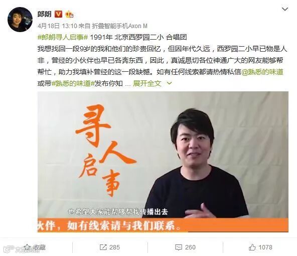郎朗的初衷是希望通过媒体可能找到儿时伙伴,