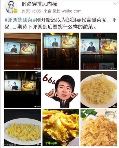 于是,他才发布了这条找酸菜的微博。