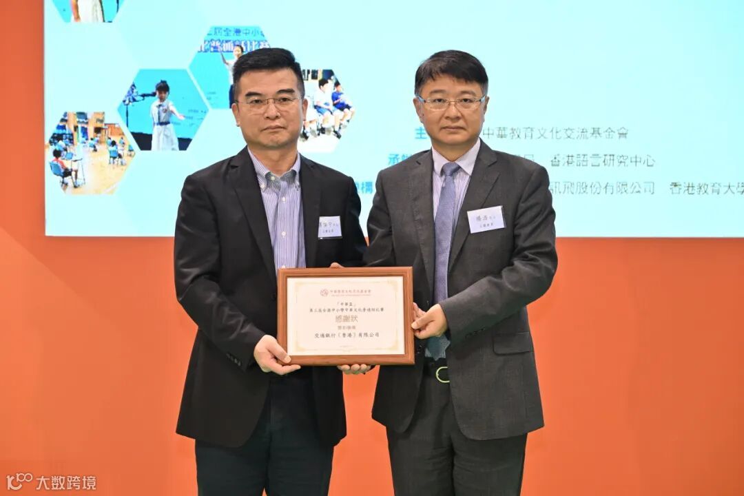 圖 | 交通銀行(香港)副行政總裁楊浩為小學一年級、二年級組別獲獎者頒獎