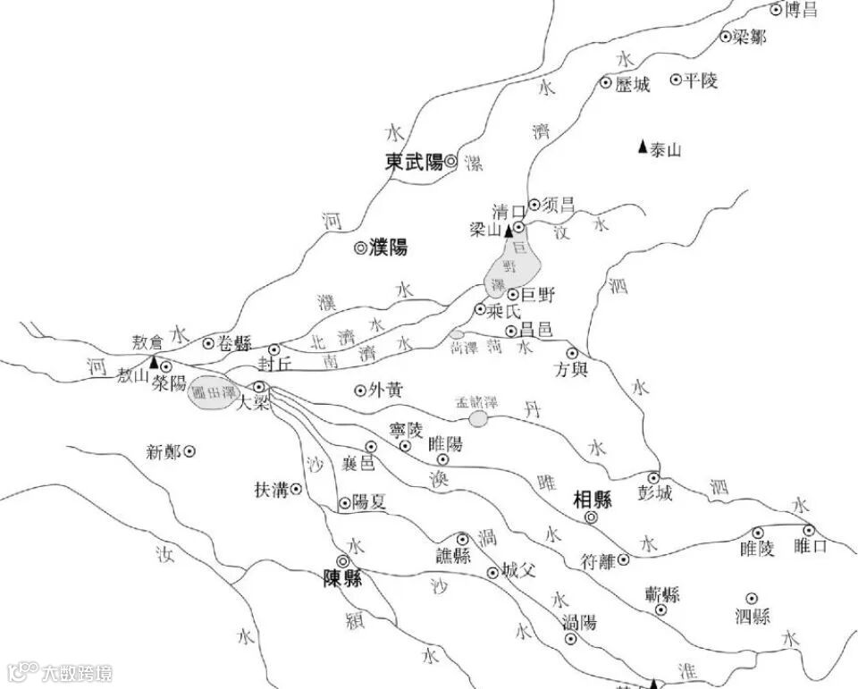 圖 | 敖倉與河、濟、鴻溝水運示意圖(圖源《中國古代戰爭的地理樞紐》)
