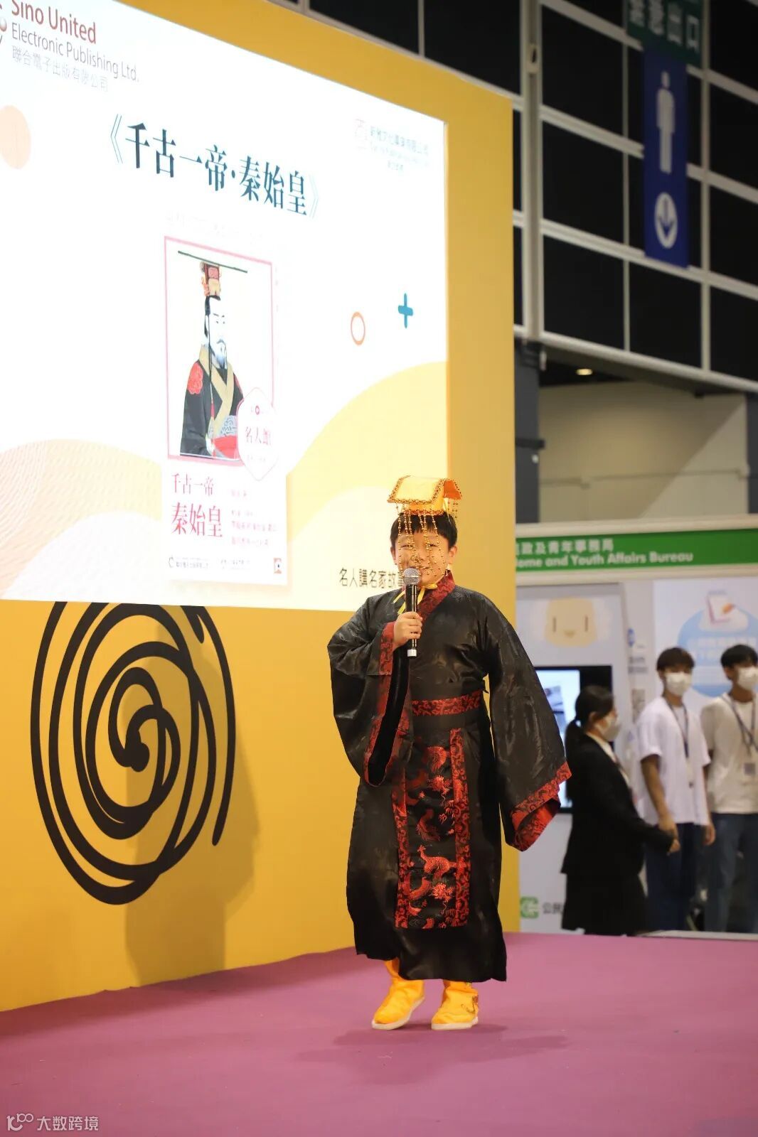 與《精忠報國·岳飛》同期發布的另一本公益計劃有聲書《千古一帝·秦始皇》,邀請到了著名藝人及歌手李龍基先生出演「秦始皇」。同為「知書閱聽圖書館」的優秀小主播學員吳卓賢此番出演「小秦始皇」,他以古裝造型出場並演唱了「秦始皇」主題曲,得到了李龍基先生現場經驗傳授——走路時如何才更有皇帝的風範?引得現場觀眾直呼叫好。李先生的演藝生涯中曾多次飾演「皇帝」一角,他向觀眾講述了錄製有聲書與演戲的不同之處,更分享了聲演古裝的秘訣。隨後,參演該本有聲書的多間香港名校校長亦登台與觀眾見面,分享了各自的心得及推動校園多元閱讀方面的想法。