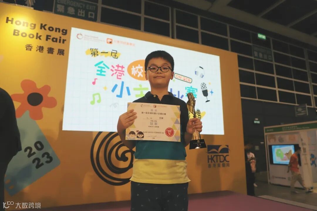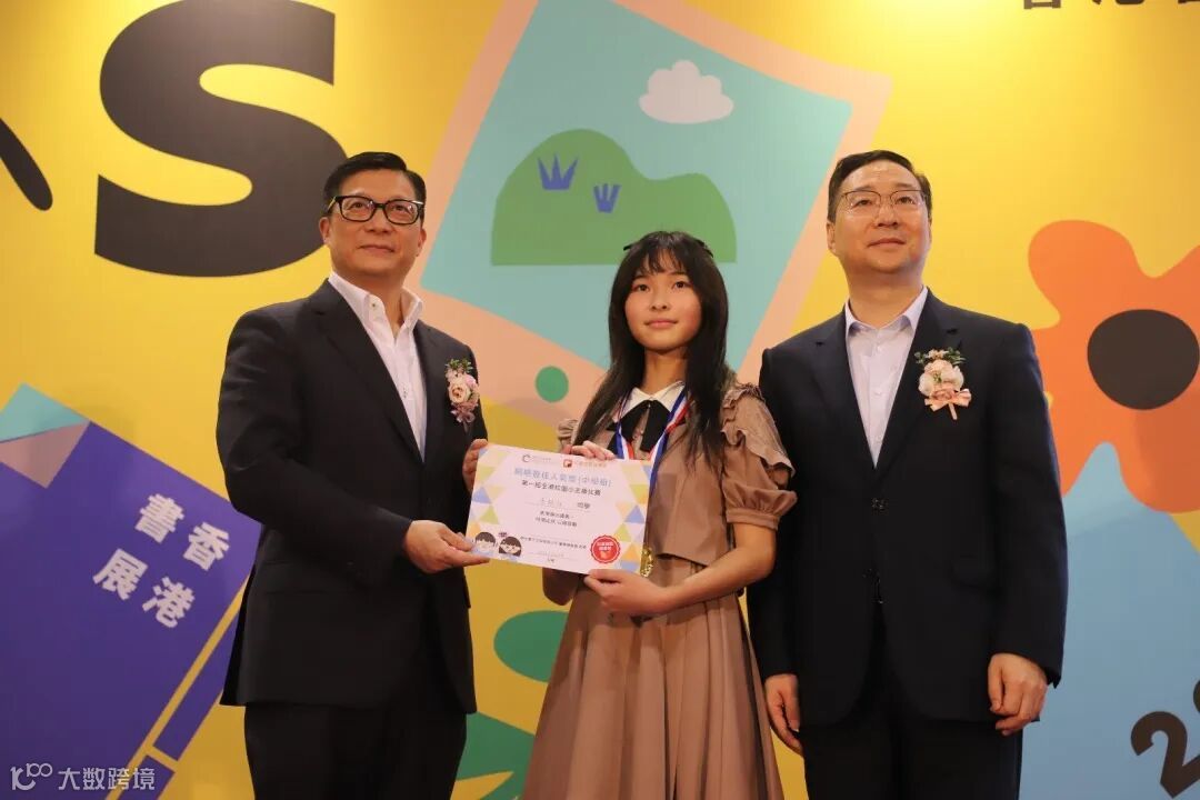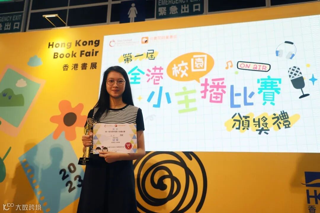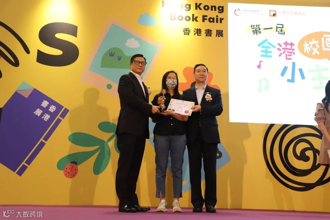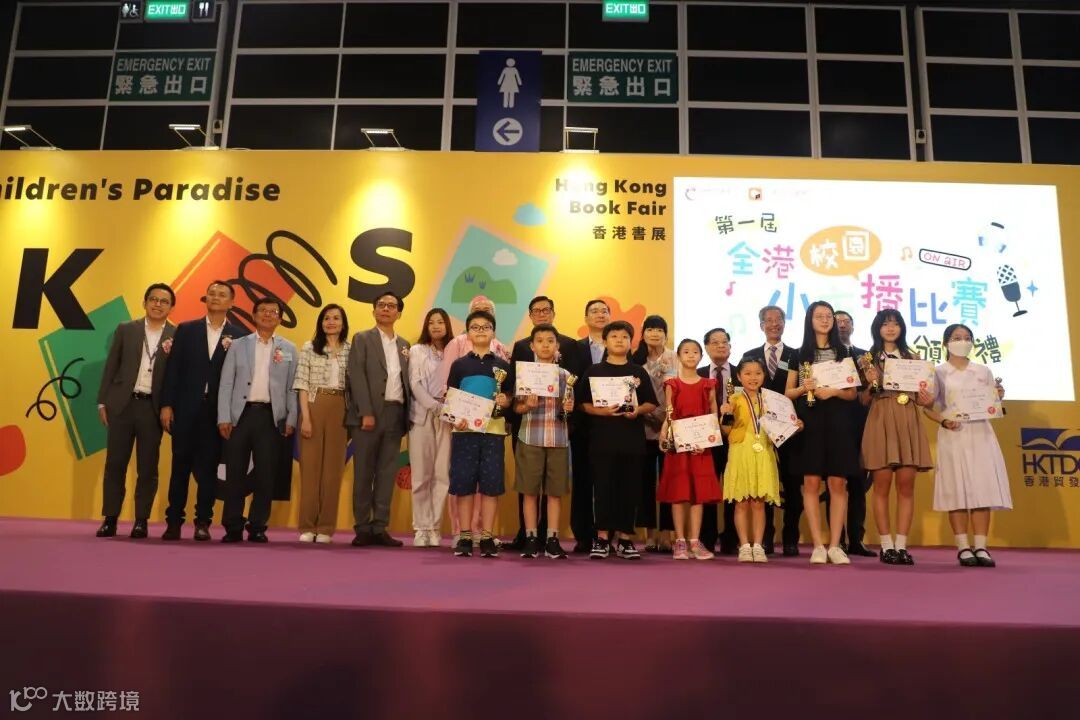 分享會活動結束後,與會領導和嘉賓為在「第一屆全港校園小主播比賽」決賽中獲得名次的優秀學員頒獎。該賽事由「知書閱聽圖書館」主辦,6月中旬啟動,通過學校網絡、社媒平台等途徑公布比賽計劃,有300餘人報名參與此次比賽。經過初賽、複賽、網絡票選等環節的激烈角逐,於7月20日在香港書展現場小舞台舉行了總決賽,誕生了首屆比賽的冠、亞、季軍,並順利簽約成為「知書小主播」。
