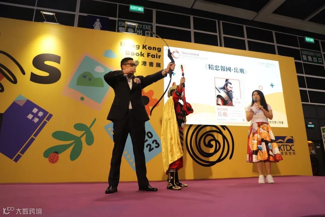 金像獎影后鮑起靜女士在有聲書中飾演「岳母」這一角色,「岳母刺字」這一章節感動了很多人,雖只有短短幾句台詞,卻充分展現出其母愛的偉大之處。鄧局長與鮑女士是第一次合作,因公益計劃而結緣,創作出高水準的有聲作品,展現出兩位名家時刻關心關注青少年的成長,積極推動有聲閱讀發展,用情至深至切。「知書閱聽圖書館」的優秀小主播學員甄灝此次獲邀出演「小岳飛」,現場與鄧局長共同表演了有聲書中「少年岳飛拉弓」的故事場景,為這本有聲書增添了更多的畫面感。