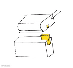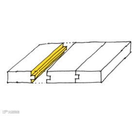 木板小面居中打槽,另一塊與之結合的板面裁作凸榫,將兩板互相咬合。