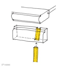穿銷與栽銷的方法類似,不同之處在於,栽銷法銷子不穿透構件,而穿銷法則要穿透兩層乃至多層構件。