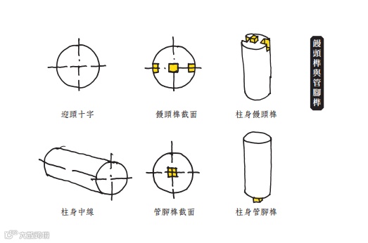 構件中的凸出部分稱為「榫」(榫頭,也稱作筍頭)。