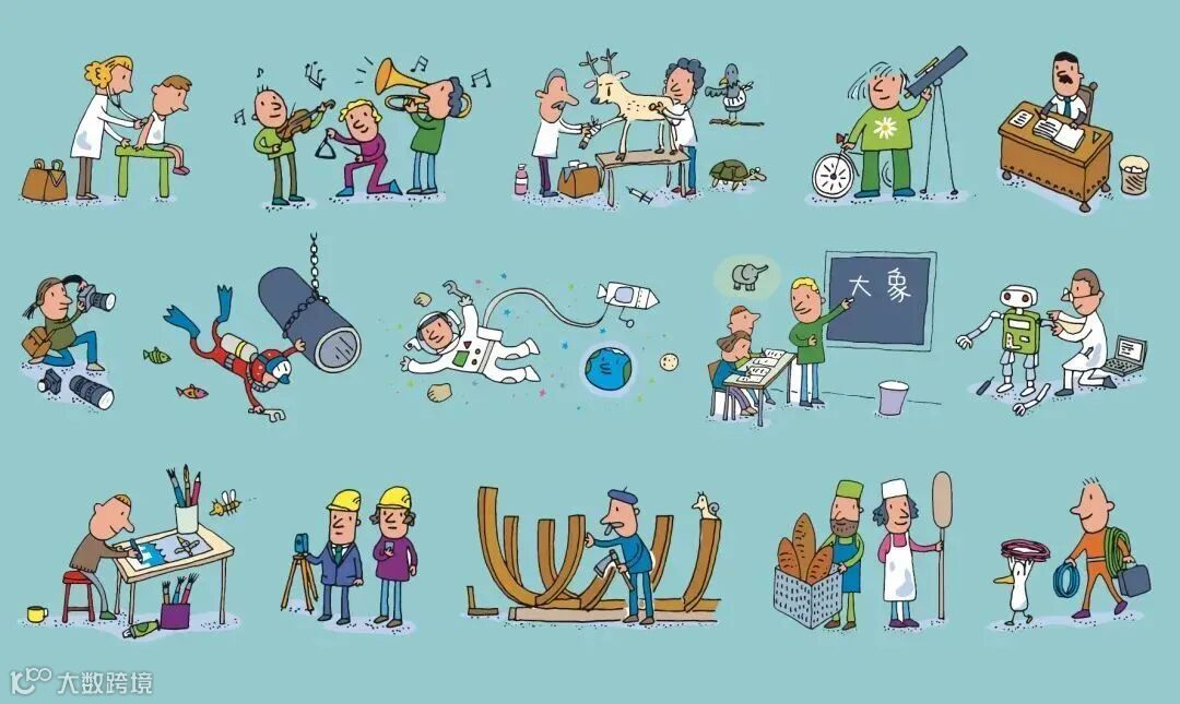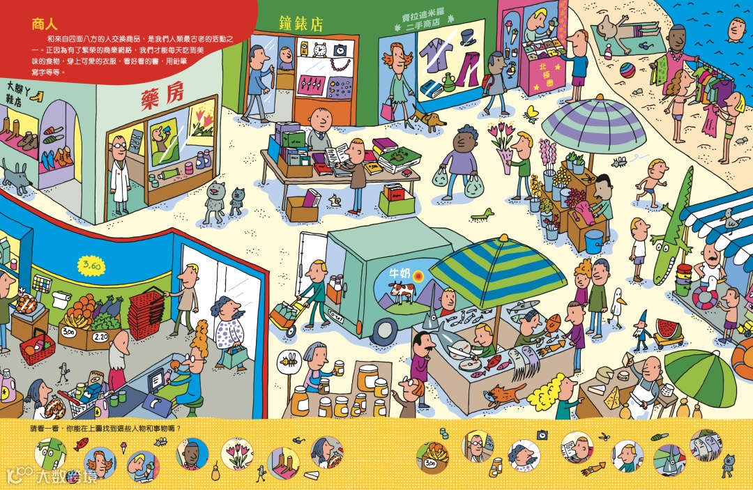 本書由意大利暢銷兒童科普書《好奇水先生》系列作者——亞哥斯提諾‧特萊尼繪著。書中的版式簡潔易讀,內容豐富,包含了28種不同範疇的職業。本書以活潑逗趣的插畫,簡明扼要地展示了各行各業的工作特點,帶領孩子上山下海看看不同的職業。作者更細心地在不同的場景圖中,加設了找找看的遊戲,讓孩子可以邊玩邊學,對行業相關的人物和事物有更加深刻的印象。