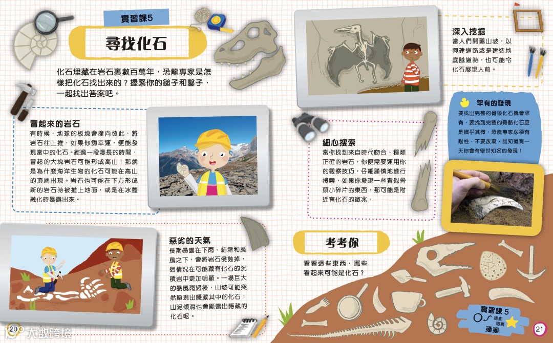 本書從不一樣的角度讓孩子認識有關考古和恐龍的知識。孩子在認識不同種類恐龍的同時,既可提高觀察力和專注力,也可以讓他們學習地球上生物演化的科學知識。